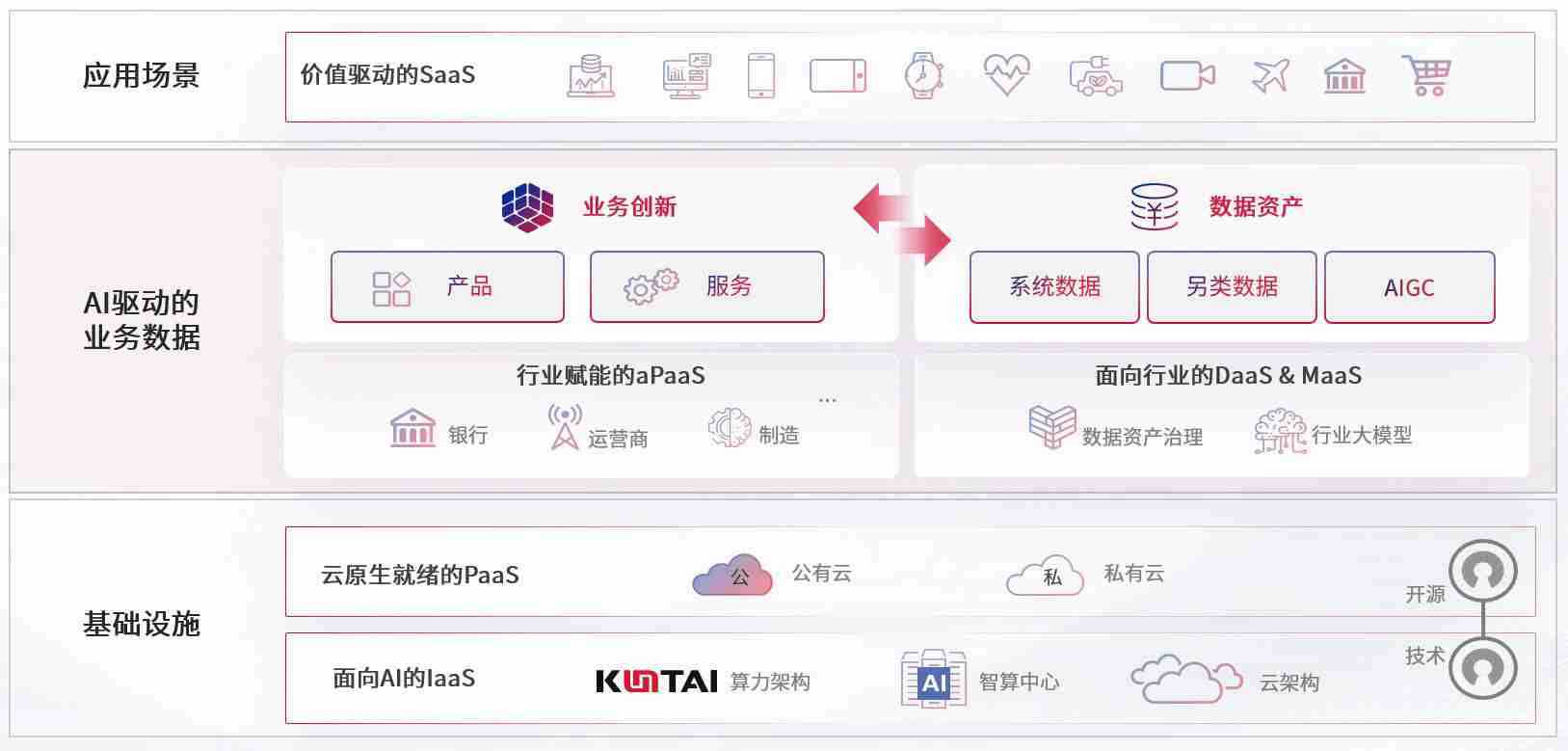 数字时代,,,围绕企业数字化转型的关键要素,,z6com尊龙数码开创性的提出数云融合战略和技术体系框架,,,,着力在云原生、、、数字原生、、、、AI原生和信创产业上架构产品和服务能力,,,为处在不同数字化转型阶段的快消零售、、、汽车、、、金融、、、、医疗、、、政企、、教育、、、运营商等行业客户提供泛在的敏捷IT能力和融合的数据驱动能力,,,构建跨界融合创新的数字业务场景和新业务模式,,,,助力企业级客户建立面向未来的核心能力和竞争优势,,全面推动社会的数字化、、、智能化转型升级。。